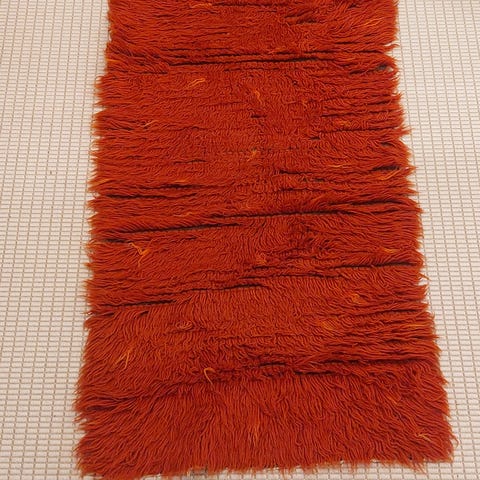 Musta/pinkki/Valko kuvioinen, kaunis kudottu Matto jossa hapsut, pituus 122cm, leveys 56 cm, ehjä.