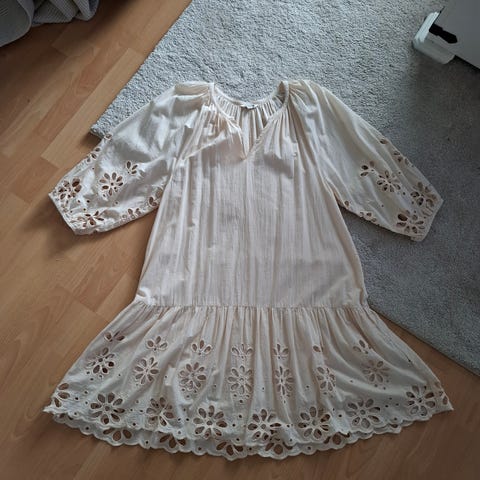 Myydään kaunis pitsikuvioinen Indiskan M-kokoinen neuletunika. Kainalo-kainalo-mitta 43 cm. Beigen värinen, lyhythihainen. 80 % puuvillaa, 20% villaa, ihanan pehmeä! Vähän käytetty.