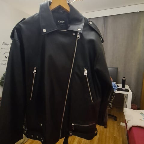 Vähällä käytöllä ollut Onlyn tekonahkatakki. Punaruskea. Vetoketjun saa kiinni.