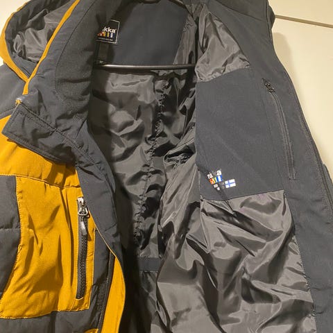 Ruotsalaisen Elvinen valmistama lämmin, tummansininen talvitakki. Useita taskuja sekä ulko että sisäpuolella. Vetoketjun suojaava kaitale kiinnittyy magneetilla.