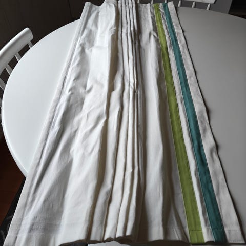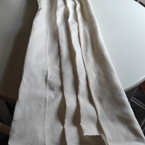 Desingners Guildin pellavakankaasta teetetty valelaskosverho. Verhon leveys 185 cm. Kiinnitys tarralla. Hajuton ja savuton koti, verho kunnoltaan kuin uusi.