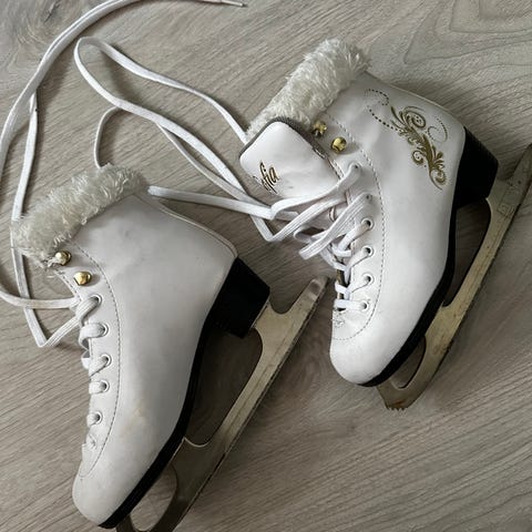 Myydään lasten hyväkuntoiset kaunoluistimet. Pohjallisen pituus 22cm.