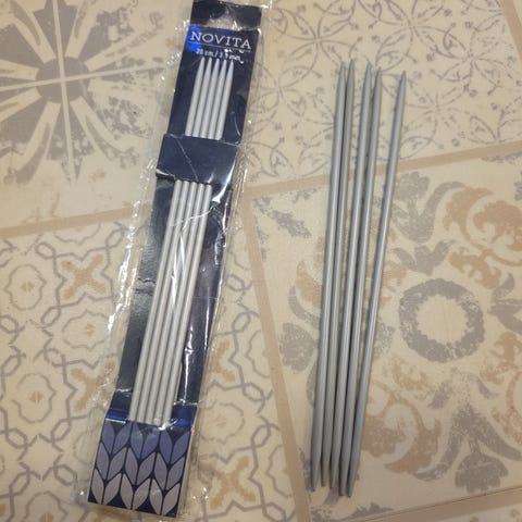 Myydään kuvan sukkapuikot. Yhdestä setistä puuttuu pakkaus, joten ei tietoa mikä koko kyseessä