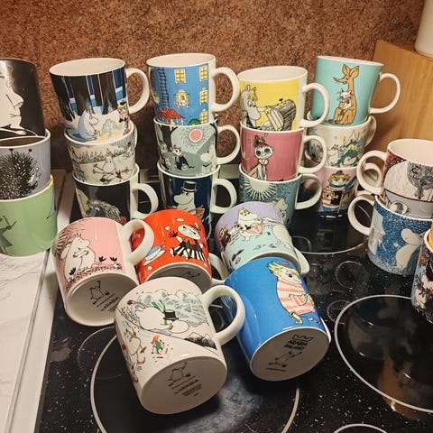Ison koon Muumi -pillimukit 90-luvulta. Pilliosia ei ole.
