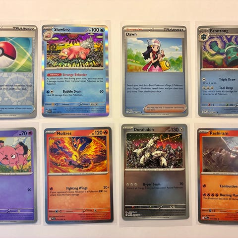 Pokemon trading card game Holo- ja reverse holo -kortteja.