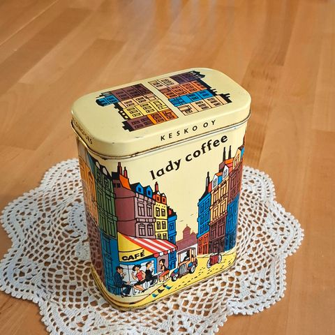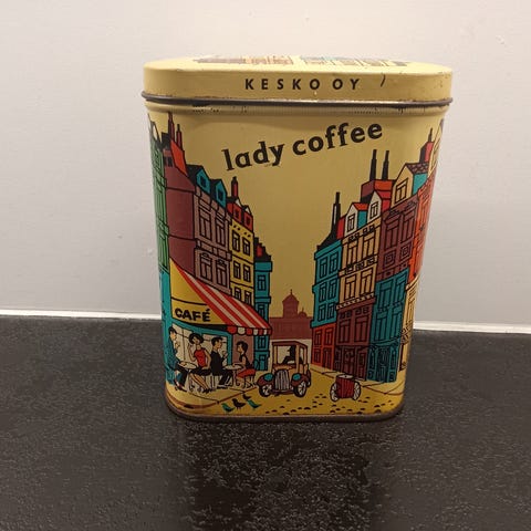 Myyn kuvanmukaisen vanhan Lady Coffee purkin. Ajanpatimoimana niinkuin pitääkin.Hinta 20€.
