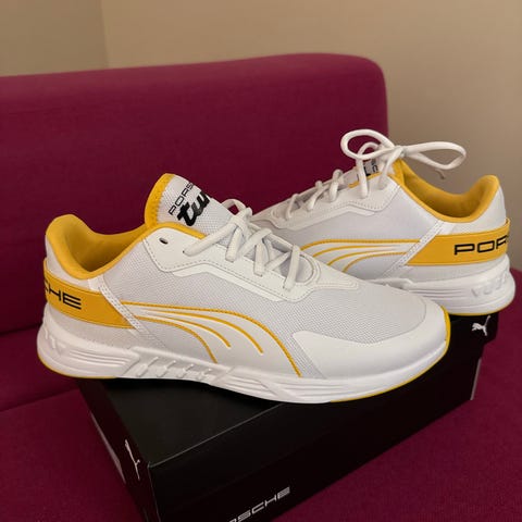 Muutamaan kertaan käytetyt nahkaiset lenkkitossut/kävelykengät Puman ja Alexander McQueen yhteistyömallistoa