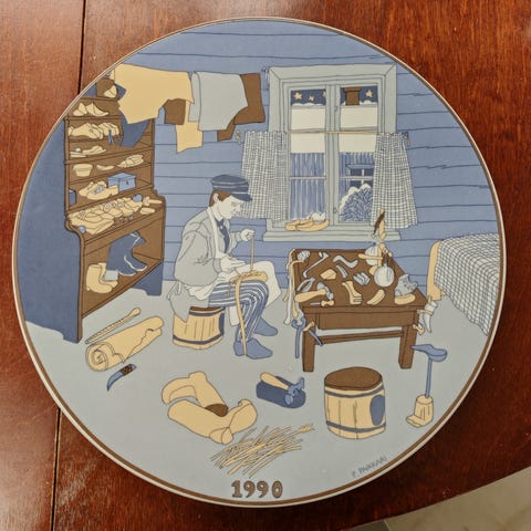 Arabia: Perinteiset käsityöammatit - Suutari 1990 - seinälautanen.