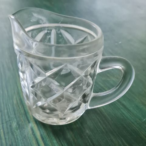 Lasinen vanha kermakko kauniilla hiotulla kuviolla. Todennäköisesti Neuvostoliiton ajoilta. Korkeus 9,5cm ja halkaisija 11cm ja tilavuus 5dl. Kunto moitteeton. Nouto Saimaanharjulta 10km Lappeenrannasta. Voin postittaa mutta postikulut sinulle