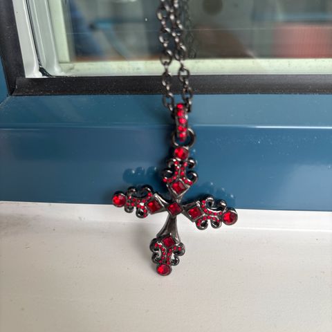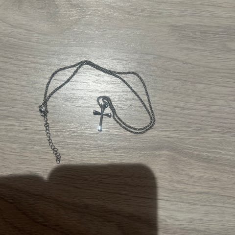 Ristikaulakoru ketjun pituus 60 cm, väri patinoitu hopea