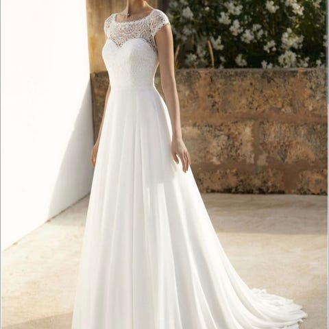 En ole pesettänyt. Mekossa ei hajuja. Käytetty hääpäivänä kuvauksessa ja kahveilla, ei ole siis montaa tuntia ollut päällä. Säilytetty pukupussissa. Mukana irtovyö.