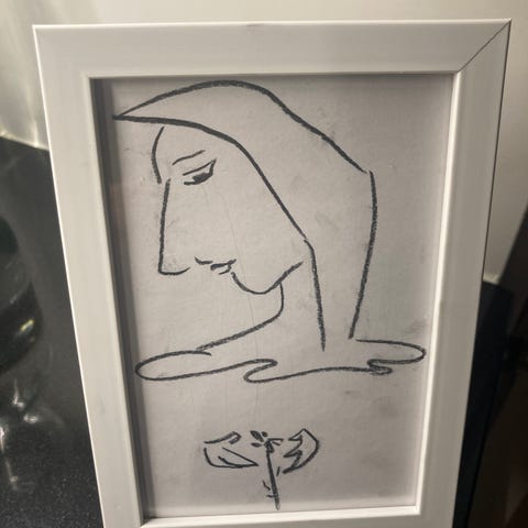 “Sinä päivänä”. Hiilityö 70x50 cm, tehty paksulle taide/askartelupaperille. Upea realismia ilmentävä teos. Hinnasta voidaan keskustella.
