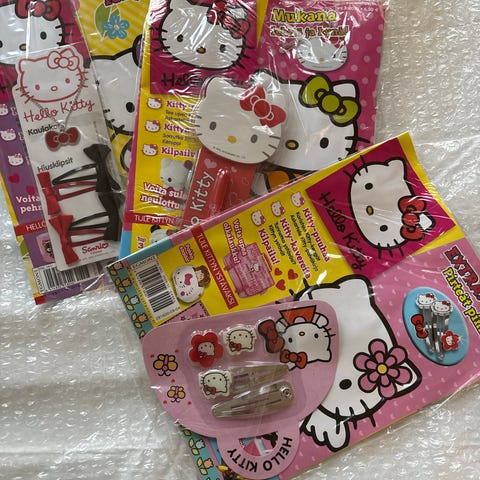 Hello Kitty lehti vuosien takaa. Mukana koru.