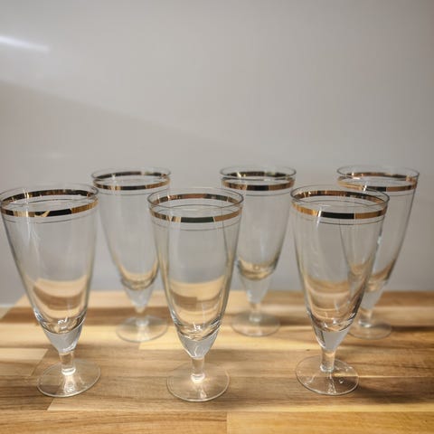 5kpl hyväkuntoisia shampanjalaseja, eivät kaikki samaa sarjaa. Kaksi laseista Walther Crystal -merkkisiä ja yksi ARC-merkkinen.