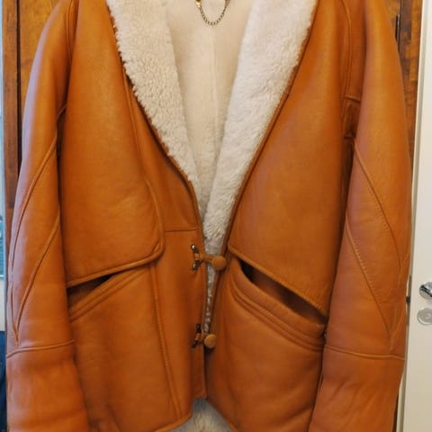 Myydään siisti nahka-tekoturkistakki.