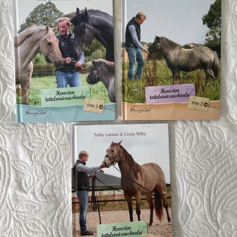 Tobbe Larsson ja Ursula Wilby: Hevosten tottelevaisuuskoulu , osat 2-4, kirjat uudenveroiset, ei mitään merkintöjä, selkeät värivalokuvat. Hinta 3€/kpl, kaikki yht. 8e plus mahd.posti/diilikulu