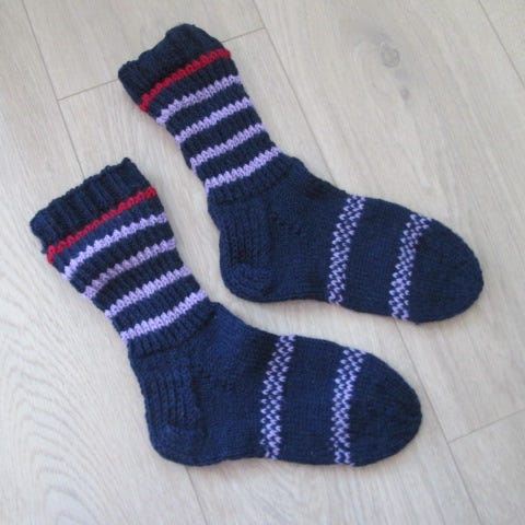 Kummatkin tehty 7 veljestä langasta (pehmeä, ei kutiava villa). Varsi venyy reilusti.