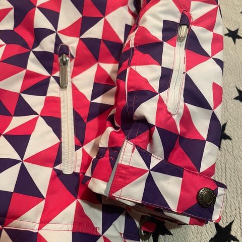 Todella lämmin, tuulen- ja vedenpitävä, hengittävä. Tämän kanssa ei ole vilukissankaan tarvinnut kertaakaan palella. Kainaloissa vetoketjuilla suljettavat kätevät tuuletusaukot. Helmassa vetoketjulla irrotettava lumilukko.