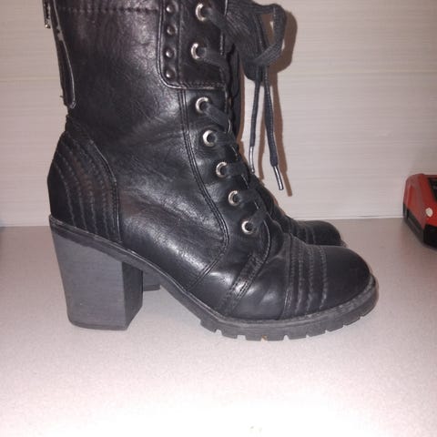 Remonte dorndorf talvinilkkurit koko 38. Nilkkureiksi varsin lämpimät, kumipohjat vähentävät kaatuilua liukkaammalla kelillä. Paksut lämpimät ja istuvat pohjalliset tekevät kengästä mukavan käyttää, vähemmän korkkareita käyttävänä koko päivän pärjännyt nämä jalassa. Jonkinverran kulumaa lähinnä sisävuoressa, joka pitkälti kuvissa nähtävillä. Nyt käyneet pieneksi