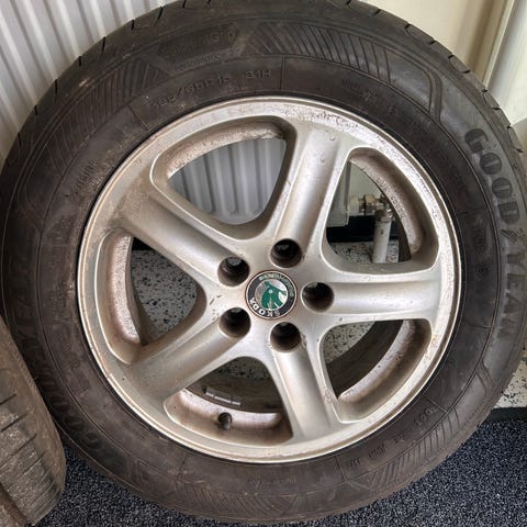 Kesärenkaat vanteilla. 3 vannetta kierona ja naarmuja löytyy. Renkaissa 5mm pintaa. Mukaan löytyy sovitteet 70.0-57.1 keskiölle.