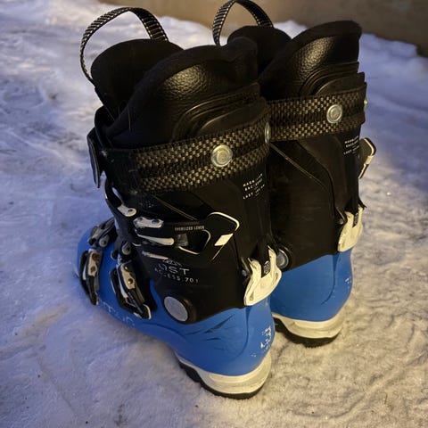 Salomon laskettelumonot mondokoko 24, vastaa kenkäkokoa 37-38, väri punainen.