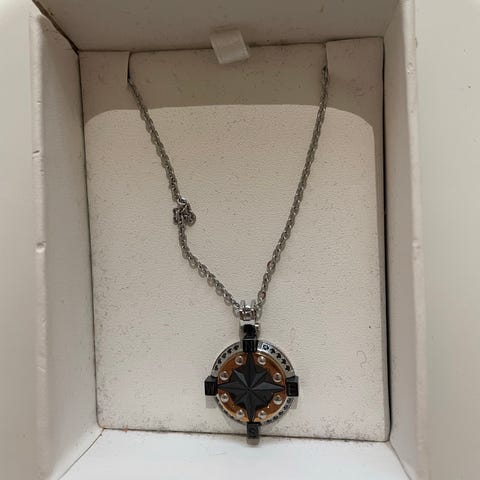 Alfred & Co Jewellery London kompassi riipus. Halkaisija 30mm, ketjun pituus 50cm. Suojapussi ja kotelo mukaan. Postikulut ostajan piikkiin.