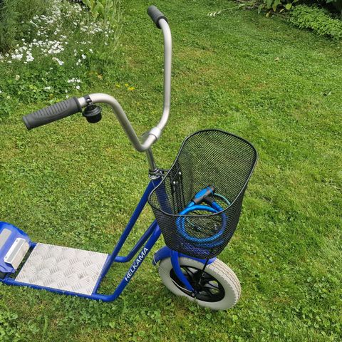 Potkulauta, jossa tavarankuljetuslava. Kolmipyöräinen. Toimii moitteettomasti.