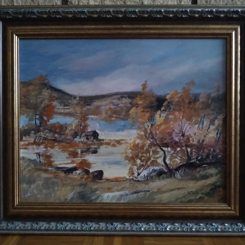 Helge Monten -71, signeerattu maalaus kangaspohjalle. Mitat 65 x 47 cm.