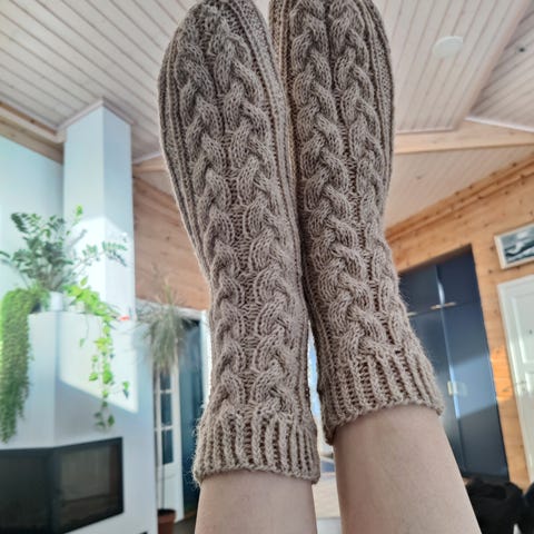 Lämpimät pitkävartiset palmikkosukat 7velj.langasta koko 40/41