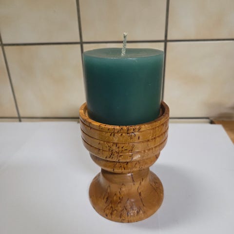 Puinen kynttilänjalka Talo on tehty vanhasta puukannosta erityisellä tekniikalla.