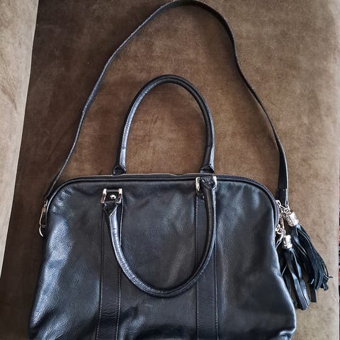 Kuvien mukainen vähän käytetty ehjä ja siisti aitoa nahkaa oleva melko iso tilava nahkalaukku eli nahkainen käsilaukku olkalaukku tai vaikka läppärilaukku