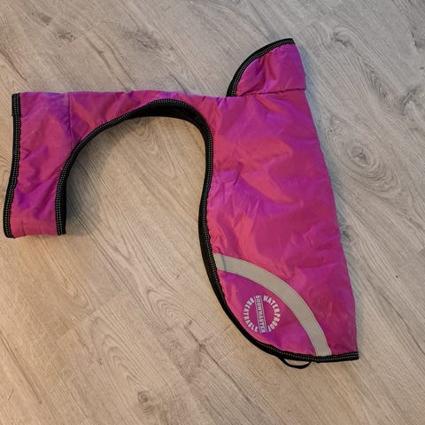 Pienen koiran puku lenkille. Selän pituus 25 cm. Uusi käyttämätön kun oli liian pieni koiralleni.