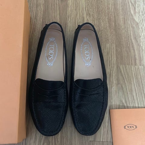 Myydään hyvässä käytetyssä kunnossa olevat Tod's Gommino Bubble kengät. Väri musta kiiltonahka, upeilla yksityiskohdilla.