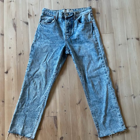 Amisun valkoiset farkut. Koko 36. Lahkeet viimeistelemättömät tarkoituksella.(En ole itse saksinut 🙂) Ehjät ja siistit, hyväkuntoiset farkut. Ei moitittavaa.