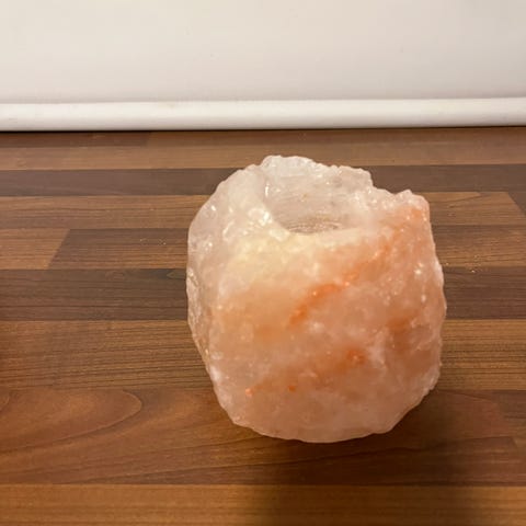 Suolakivilyhty, johon mahtuu sisään tuikku/lämpökynttilä. Korkeus n. 10cm