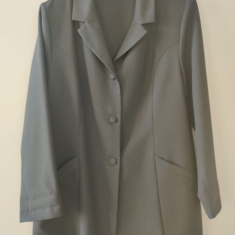 Musta naisten Blazeri, koko 40, takissa kevyt vuori, edessä napit+napillinen pikku tasku, hihan suissa koriste napit, materiaali 55%trevira, 40%ull ja 5%lycraa, olka toppaukset, mitta kainalosta kainaloon 55 cm edestä mitta, hihan mitta kainalosta hihan suuhun 44 cm, mitta olalta helmaan 82 cm, siisti.