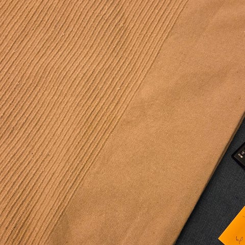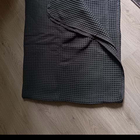 Yhdestä kohtaa korjattu siististi (kuva). Kuvassa peitto on 160cm sängyn päällä joten siitä saa käsityksen koosta.