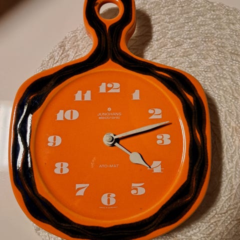 Hianosti toimiva vintage Junghans -seinäkello. Siinä on miellyttävä, pehmeä sointiääni. Kellon voi asettaa soimaan koko ja puolen tunnin kohdalla tai sen toiminnon pois päältä. Vain nouto. Maksu käteisellä.