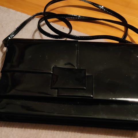 Musta käyttämätön käsilaukku. Leveys 25, korkeus 17