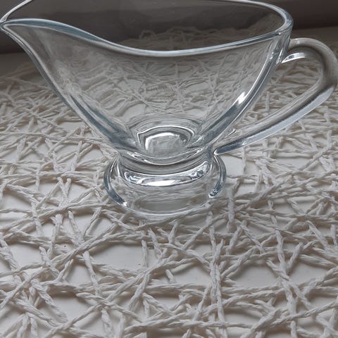 Vanha lasikannu, hieno joulutontun kuva nokan alapuolella edessä, käsinmaalattu. Kork. 17 cm, pohjan halk. 8,3 cm. Ehjä. Postitus tai nouto.