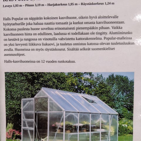 Kivikankaan Halls Magnum kasvihuone, uusi, paketissa. Vain nouto Seinäjoki.