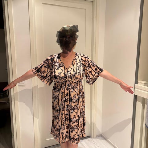 Kaunis pitkähihainen, vuorillinen mekko, jonka alaosa shortsit. Vähälle käytölle jäänyt, eli hyvässä kunnossa.
