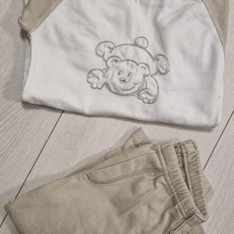 Myydään Sanetan oloasusetti, luomupuuvillaa. Hyvä käytetty kunto.