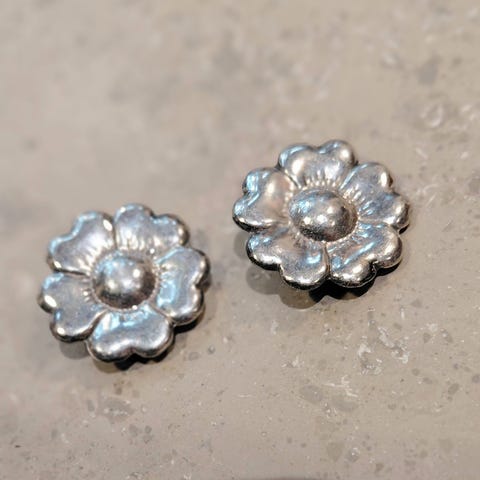 Kivat 60-luvun korvakorut hopeaa. Läpimitta 15 mm. Koukkukiinnitys.