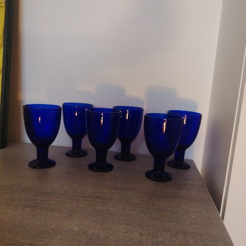 Kaikissa laseissa pohjassa ”Kerttu Nurminen Iittala” ja kaikissa laseissa punainen tarra. Nouto Saviniemestä, Hamina tai Söderkullasta