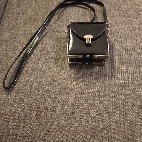 isohko musta kiiltonahkalaukku