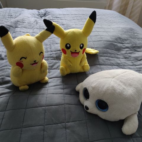 Myydään pehmolelut/Kalajoen hiekkasärkät: äiti hylje (pituus 34 cm) ja vauvahylje vetoketjulla (pituus 24 cm), uudenveroisessa kunnossa. Pientä hyljettä voi käyttää esim.rahapussina, kun selässä on vetoketju.