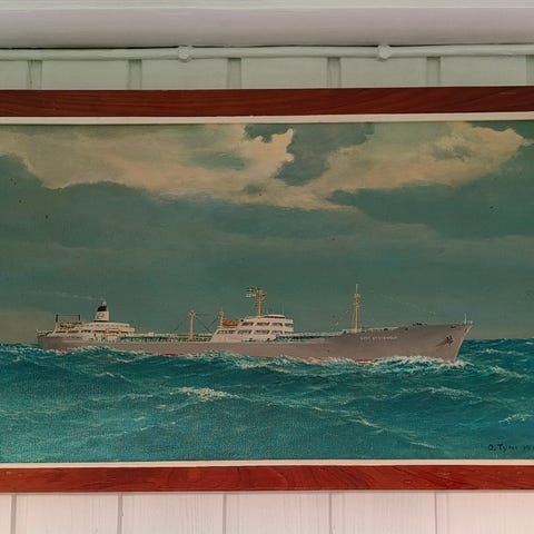Myydään kuvan Sotataulu, jossa aiheena jatkosodan Syöksyveneiden maihinnousu. Taulun koko noin leveys 74cm, korkeus 58cm.