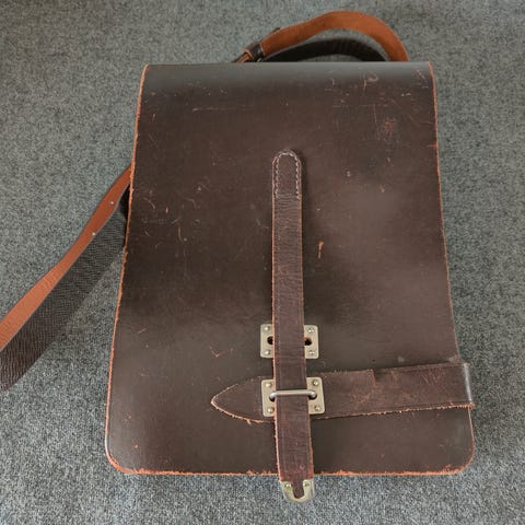 Kokonahkainen karttalaukku lokeroilla. Neuvostoliiton aikainen.