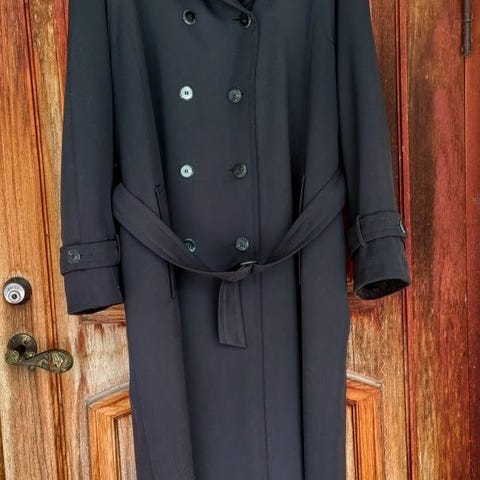 Master Coat musta naisten takki kevyellä vuorella, alku syksyyn tai keväämmällä. Kaunis takki, taitaa olla jo vintagea mutta vähällä käytöllä ollut aina.